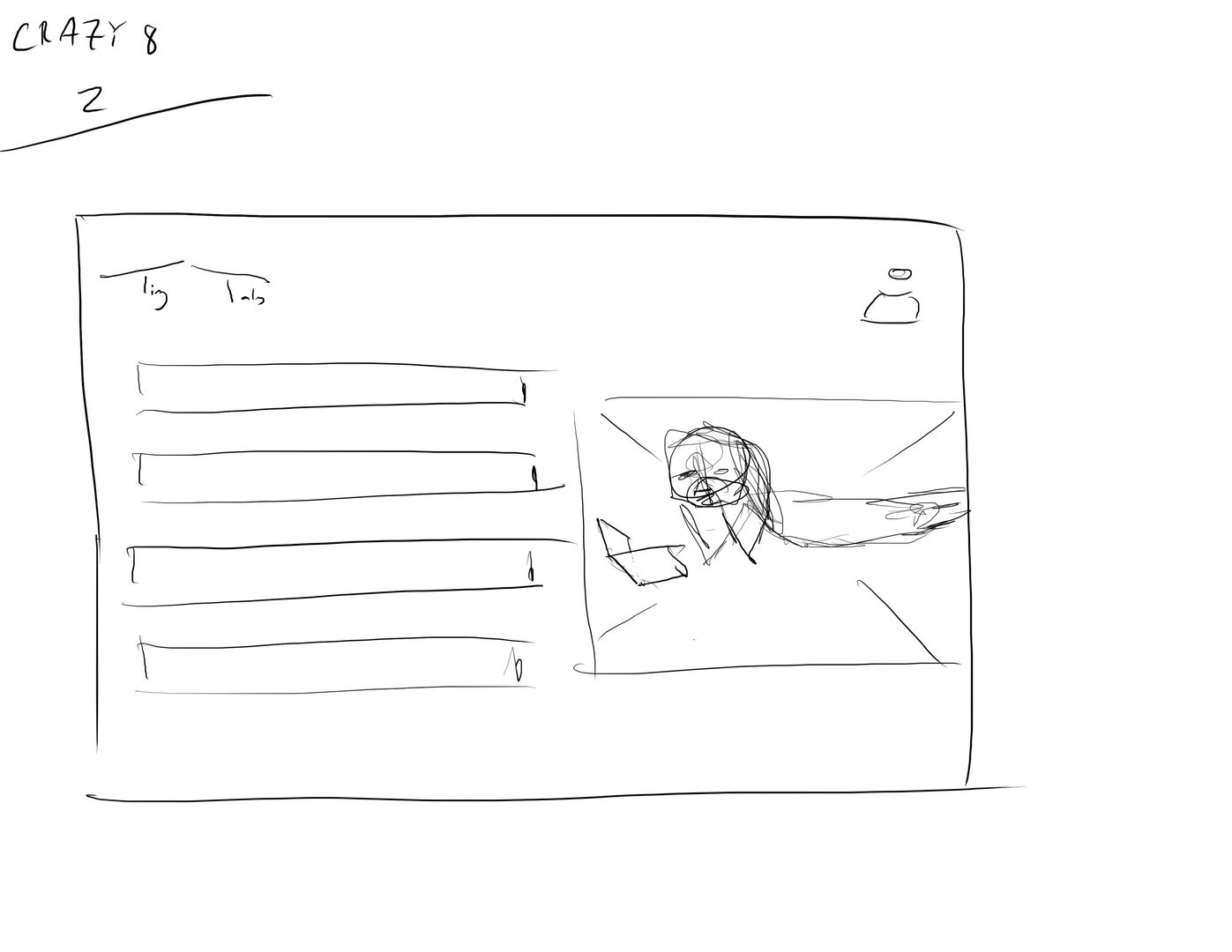Crazy eights and rapid ideation sketches in a simple and very quick wireframe style.